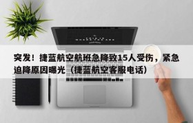 突发!捷蓝航空航班急降致15人受伤,紧急迫降原因曝光(捷蓝航空客服电话)