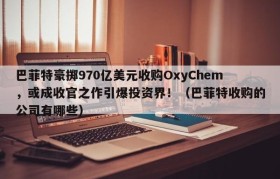 巴菲特豪掷970亿美元收购OxyChem,或成收官之作引爆投资界!(巴菲特收购的公司有哪些)