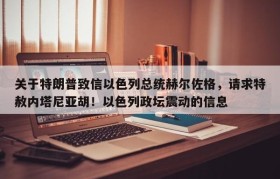 关于特朗普致信以色列总统赫尔佐格,请求特赦内塔尼亚胡!以色列政坛震动的信息