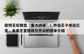 凯特王妃做出“重大抉择”!乔治王子命运已定,未来王室格局引热议的简单介绍