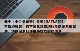 关于【小行星预警】彗星3I/ATLAS异常轨迹曝光!科学家紧急启动行星防御系统实测,地球保卫战迎来关键检验的信息