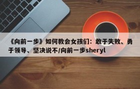 《向前一步》如何教会女孩们:敢于失败、勇于领导、坚决说不/向前一步sheryl