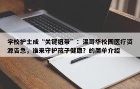 学校护士成“关键纽带”:温哥华校园医疗资源告急,谁来守护孩子健康?的简单介绍