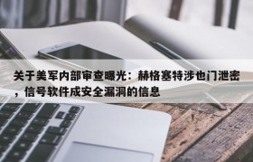 关于美军内部审查曝光:赫格塞特涉也门泄密,信号软件成安全漏洞的信息