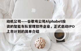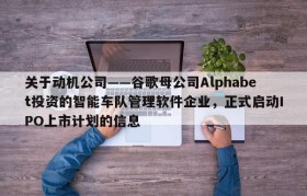 关于动机公司——谷歌母公司Alphabet投资的智能车队管理软件企业,正式启动IPO上市计划的信息