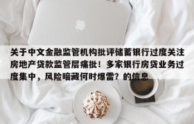 关于中文金融监管机构批评储蓄银行过度关注房地产贷款监管层痛批!多家银行房贷业务过度集中,风险暗藏何时爆雷?的信息