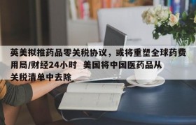 英美拟推药品零关税协议,或将重塑全球药费用局/财经24小时 美国将中国医药品从关税清单中去除
