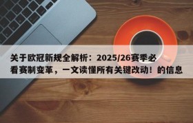 关于欧冠新规全解析:2025/26赛季必看赛制变革,一文读懂所有关键改动!的信息