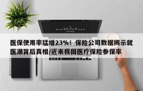 医保使用率猛增23%!保险公司数据揭示就医潮背后真相/近来我国医疗保险参保率