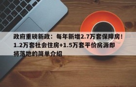 政府重磅新政:每年新增2.7万套保障房!1.2万套社会住房+1.5万套平价房源即将落地的简单介绍