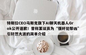 特斯拉CEO马斯克旗下AI聊天机器人Grok公开道歉!曾称某议员为“强奸犯帮凶”引轩然大波的简单介绍