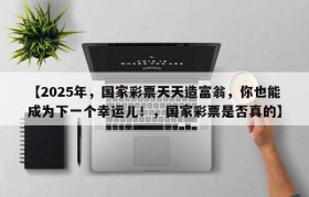 【2025年,国家彩票天天造富翁,你也能成为下一个幸运儿!,国家彩票是否真的】