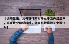 【调查显示:父母银行助力子女多次升级房产,实现置业阶梯跨越,父母银行贷款子女要还吗】