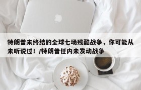 特朗普未终结的全球七场残酷战争,你可能从未听说过!/特朗普任内未发动战争