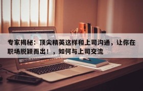 专家揭秘:顶尖精英这样和上司沟通,让你在职场脱颖而出!(如何与上司相处的技巧)