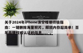 关于2024年iPhone清空相册终极指南:一键删除海量照片,释放内存超简单!百年品牌权威认证的信息