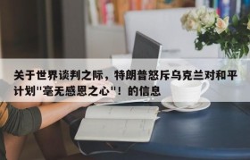 关于世界谈判之际,特朗普怒斥乌克兰对和平计划"毫无感恩之心"!的信息