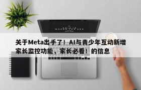 关于Meta出手了!AI与青少年互动新增家长监控功能,家长必看!的信息