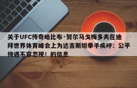 关于UFC传奇哈比布·努尔马戈梅多夫在迪拜世界体育峰会上为达吉斯坦拳手疾呼:公平待遇不容忽视!的信息