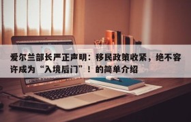 爱尔兰部长严正声明:移民政策收紧,绝不容许成为“入境后门”!的简单介绍