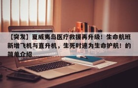 【突发】夏威夷岛医疗救援再升级!生命航班新增飞机与直升机,生死时速为生命护航!的简单介绍