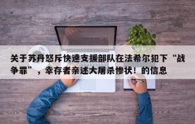 关于苏丹怒斥快速支援部队在法希尔犯下“战争罪”,幸存者亲述大屠杀惨状!的信息