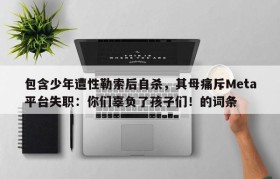 包含少年遭性勒索后自杀,其母痛斥Meta平台失职:你们辜负了孩子们!的词条