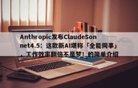 Anthropic发布ClaudeSonnet4.5:这款新AI堪称「全能同事」,工作效率翻倍不是梦!的简单介绍