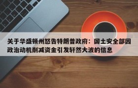关于华盛顿州怒告特朗普政府:国土安全部因政治动机削减资金引发轩然大波的信息