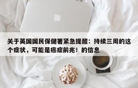 关于英国国民保健署紧急提醒:持续三周的这个症状,可能是癌症前兆!的信息