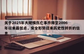 关于2025年大规模伤亡事件降至2006年以来最低点,安全形势迎来历史性转折的信息