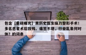 包含【重磅曝光】黑历史医生操刀整形手术!多名患者术后致残、痛苦不堪,行业乱象何时休?的词条