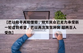 【巴以和平再陷僵局,双方民众已无力承受新一轮虚假希望,巴以再次发生冲突 超两百人受伤】
